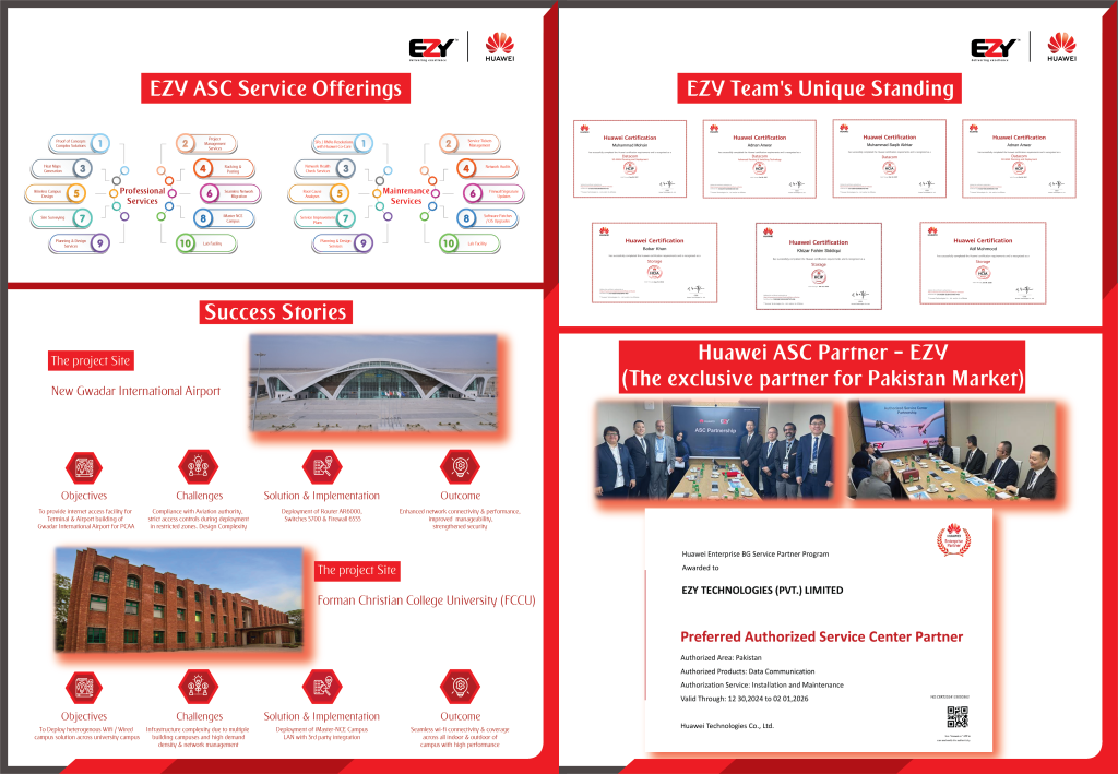 EZY has been accredited as Huawei’s only Authorized Service Centre (ASC) partner in Pakistan. What began as a strong focus on ICT skills has now evolved into a complete service journey, making EZY a trusted support partner for Huawei customers and channel partners across the country.